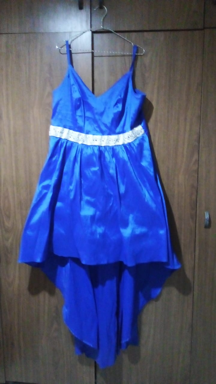 B. Darlin Royal Blue Satin High-Low Dress with Beaded Waist Detail