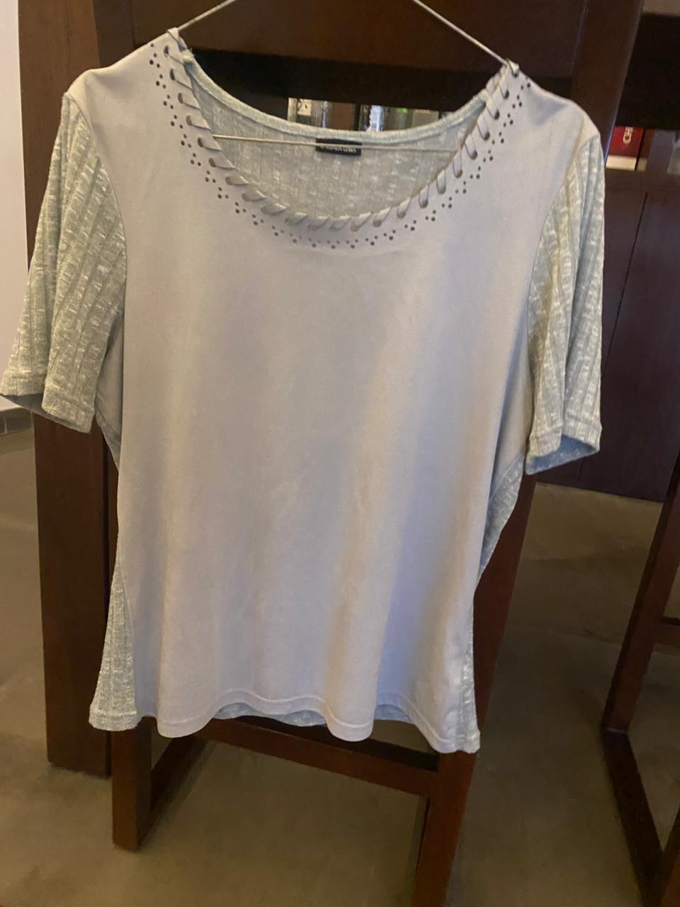 - Color: Soft grey with textured sleeves and matching sleeveless cardigan