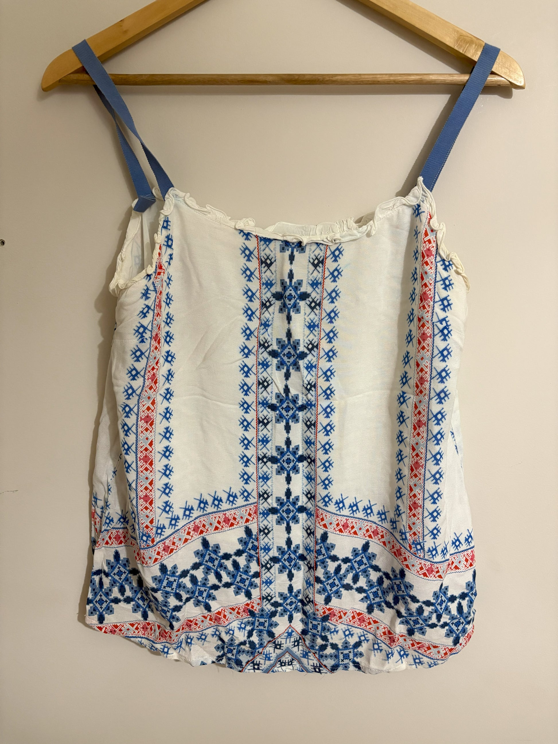 Boho Embroidered White & Blue Sleeveless Top