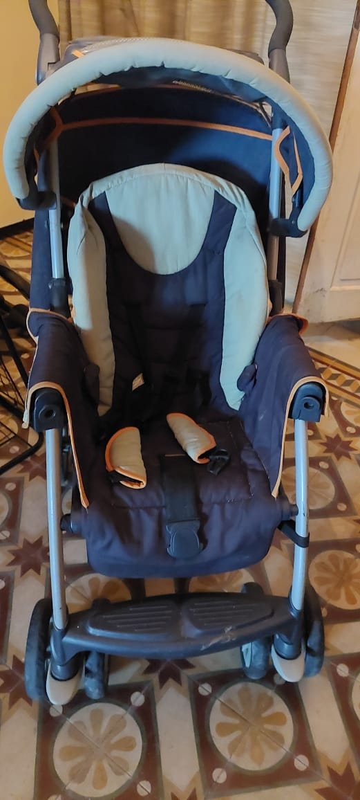 - Features: Reclining seat, parent tray, under-storage basket, swivel front wheels, safety harness