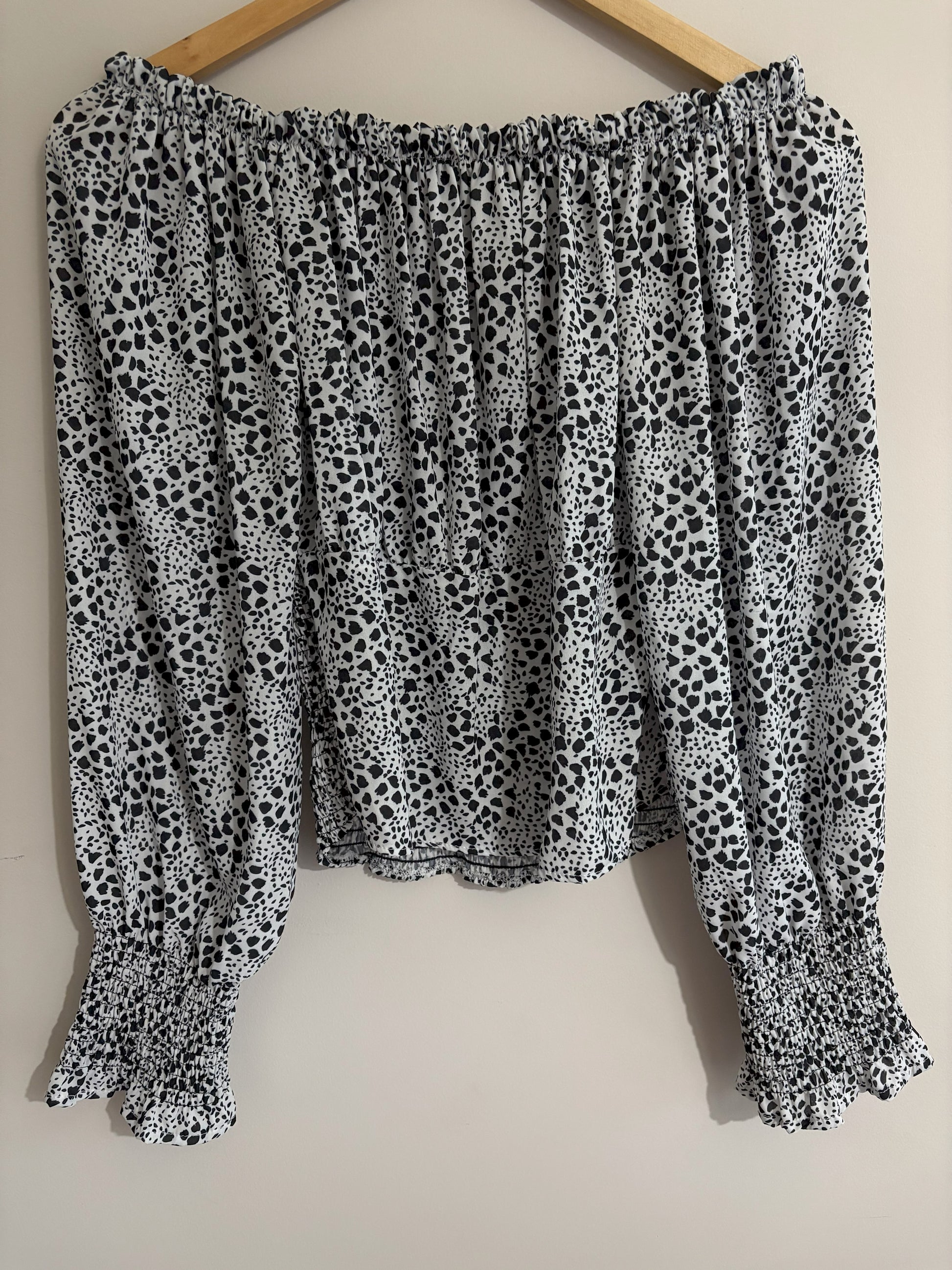 - Fit: Relaxed fit with elastic neckline and sleeve cuffs