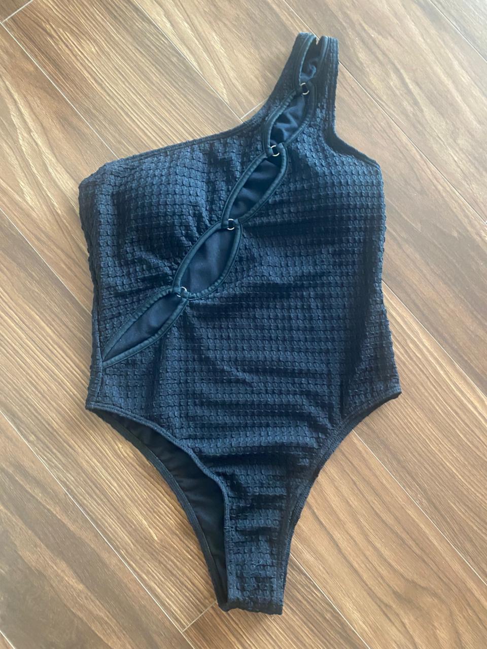 One-Shoulder Petrol Swimsuit with Sleeveless Cover-Up Dress